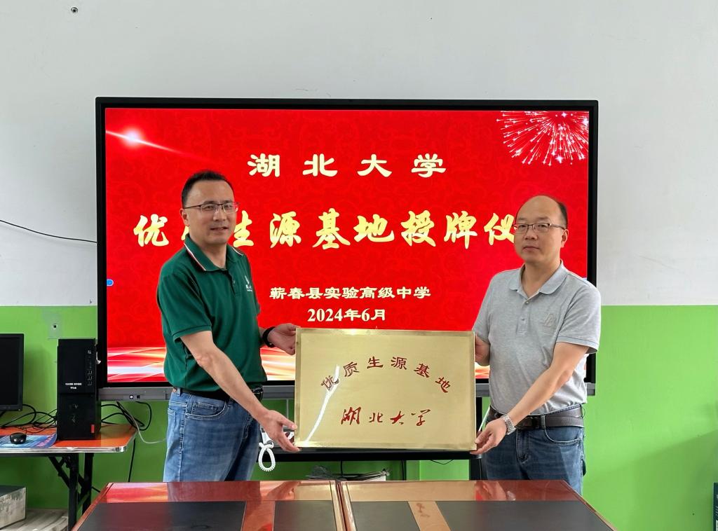伟德国际victor1946院长张修华代表伟德国际1946为蕲春实验高中颁授“伟德国际1946优质生源基地”牌,蕲春实验高中校长何亚龙代表学校接牌,与会领导及教师代表共同见证了授牌仪式。