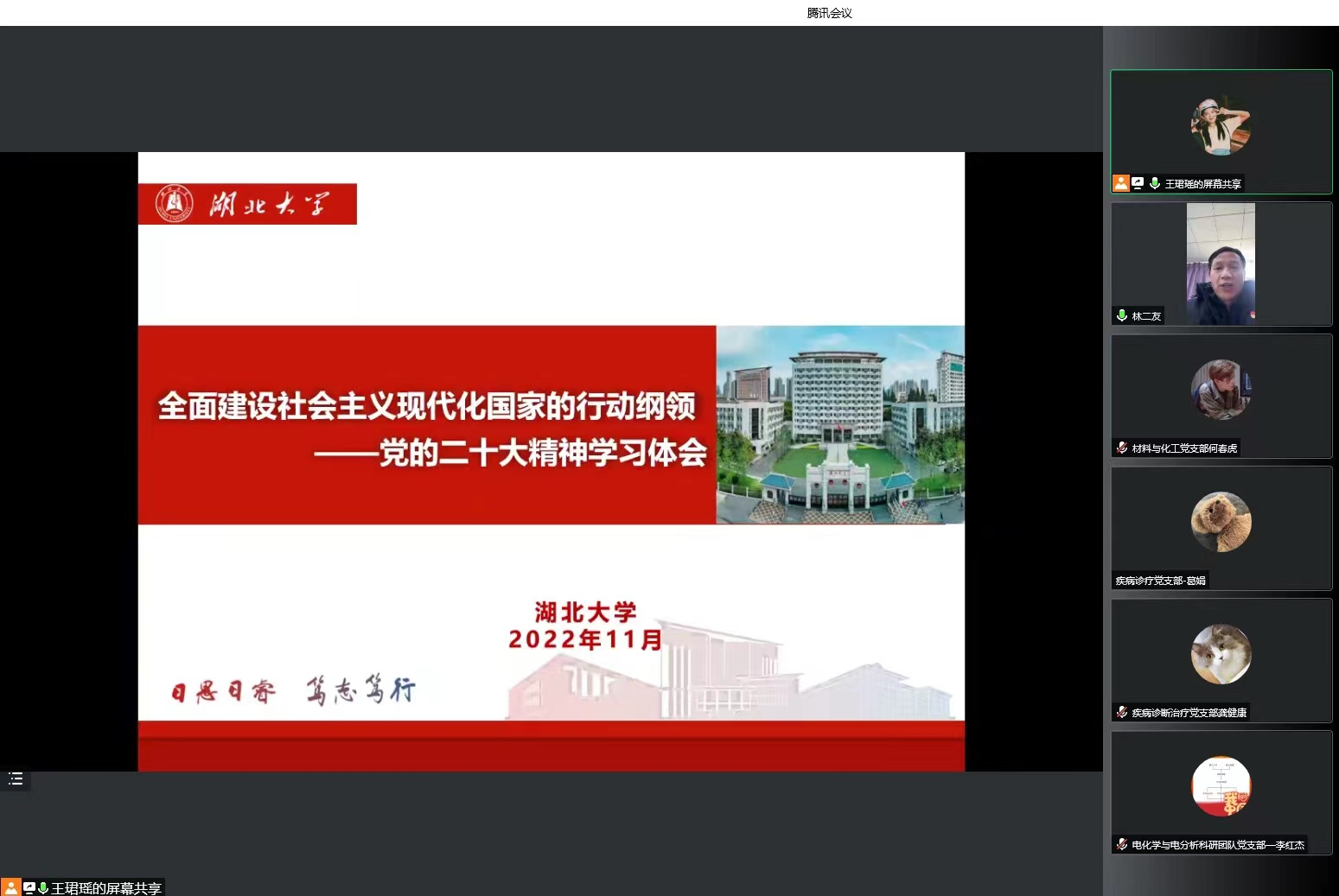 12日8日下午,学校学习宣传贯彻党的二十大精神宣讲团成员、校党委常委、副校长王世敏同志赴我院D320会议室,开展党的二十大精神宣讲活动。此次宣讲会以线上、线下相结合的方式举行,伟德国际victor1946、健康科学与工程学院、艺术学院党委委员和领导班子,创新创业、楚才学院领导班子和支部全体党员在D320会议室参会,四个学院其他教职工及学生支部委员线上参会,会议由伟德国际victor1946党委书记林二友主持。