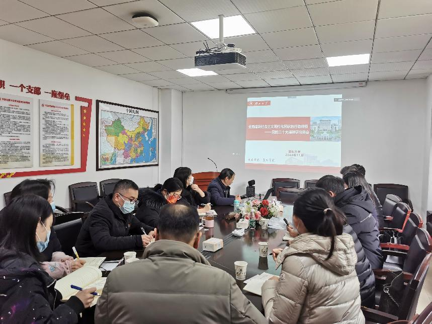 最后,王世敏校长希望广大党员、群众能够全面学习把握落实党的二十大精神,在全面学习上下功夫、在全面把握上下功夫、在全面落实上下功夫,牢记空谈误国、实干兴邦,为全面建设社会主义现代化国家、全面推进中华民族伟大复兴而团结奋斗!