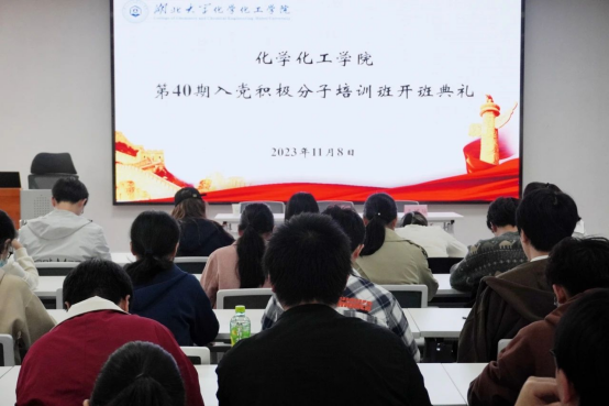 2023年11月8日中午12:30,伟德国际victor1946第40期入党积极分子培训班开班典礼在化院二楼D216报告厅顺利举行。伟德国际1946原宣传部部长、学院兼职组织员王体正,学院党委副书记刘念,学院组织员王珺瑶出席。典礼由王珺瑶主持。伴随着慷慨激昂的《义勇军进行曲》,开班典礼正式开始。