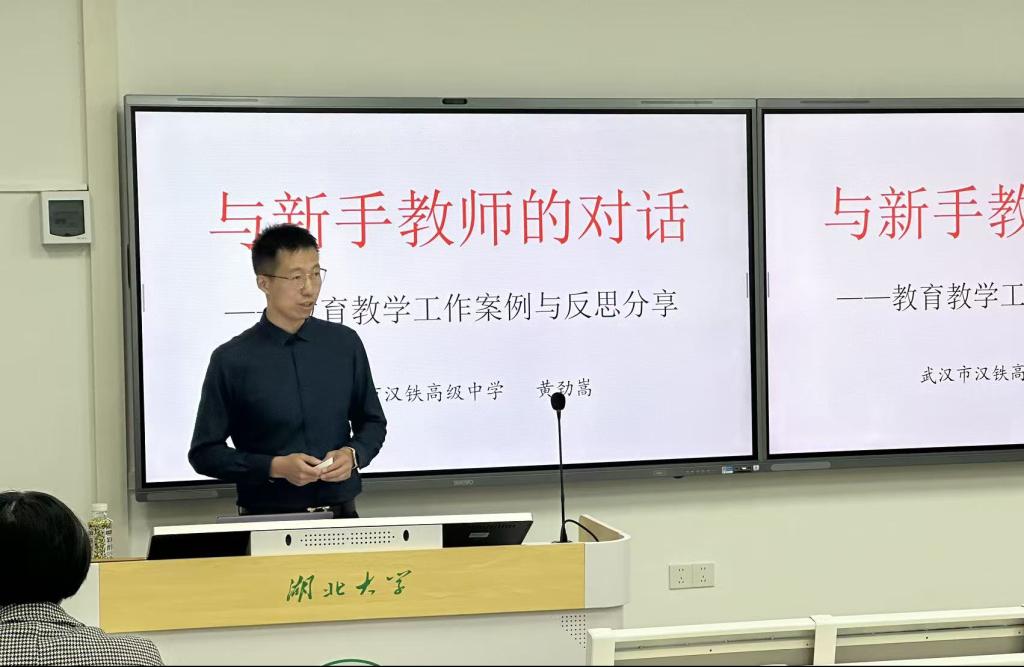 2025年伟德国际victor1946的化学教学研究工作室启动”明日师者启航计划”。并于12月上旬,邀请武汉市汉铁高中黄劲嵩老师面向师范生分享从教心得。教学副院长汪航行教授、无机教研室主任张驰老师、师范专业负责人李玲老师出席活动。作为一位拥有十二年教学经验的中学教师结合自身实践,就教师职业认知、教育教学方法、班级管理及个人成长等核心议题,进行了深入而恳切的分享。