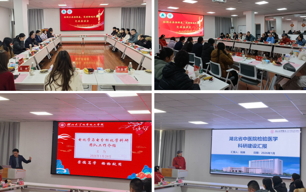 为全面贯彻新时代党的建设总要求,推动党建与业务工作同频共振、互促共进,2026年1月28日,伟德国际victor1946电化学与电分析科研团队党支部与湖北省中医院检验科党支部联合开展“检测求真强根基,党建铸魂促创新”主题党日活动。本次活动以“交流座谈+专题党课”双轮驱动,着力将党组织的政治优势、组织优势转化为攻坚克难、促进发展的强大动力,为分析化学学科建设与检验医学服务注入红色基因和创新活力。