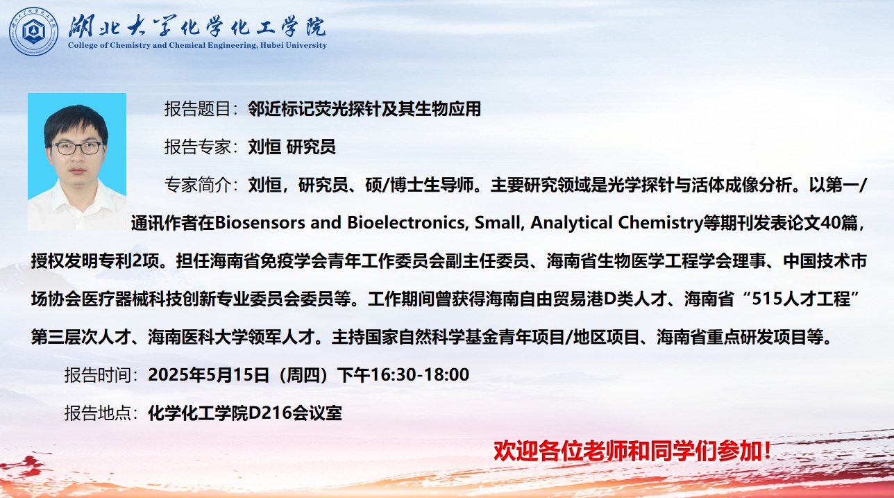 专家简介:刘恒,研究员、硕/博士生导师。主要研究领域是光学探针与活体成像分析。以第一/通讯作者在Biosensors and Bioelectronics, Small, Analytical Chemistry等期刊发表论文40篇,授权发明专利2项。担任海南省免疫学会青年工作委员会副主任委员、海南省生物医学工程学会理事、中国技术市场协会医疗器械科技创新专业委员会委员等。工作期间曾获得海南自由贸易港D类人才、海南省“515人才工程”第三层次人才、海南医科大学领军人才。主持国家自然科学基金青年项目/地区项目、海南省重点研发项目等。