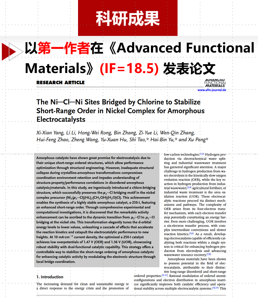 在研究生期间,他始终保持着对知识的渴望与探索之心,深知真正的求知始于课堂,却远不止于课堂。他秉持“博观而约取,厚积而薄发”的学习理念,持续拓展知识广度,夯实理论基础。从三年前初入科研领域的求知者,逐步成长为能够独立思考、勇于探索的科研工作者。他师从彭旭副教授,主要从事无机功能分子材料的设计与应用研究。在研究生阶段的学习与科研过程中,他深刻体会到,研究生学习更像是一段充满挑战的攀登之旅,远非本科阶段相对平稳的“乘车之行”可比。面对接踵而至的困难与挫折,正是在导师彭旭的悉心指导与支持下,他不断调整方向、坚定信心,逐步找到了属于自己的科研路径和成长节奏。